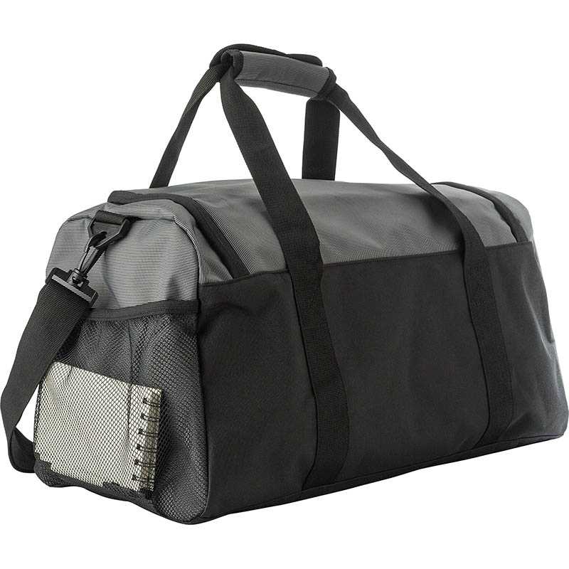 NOVINKA 2025. 500D Two Tone duffle bag with front zippered pocket. Ventilated side shoe compartment, mesh pocket on the opposite side. Short handles with Velcro for closure. Large main compartment with reinforced bottom.