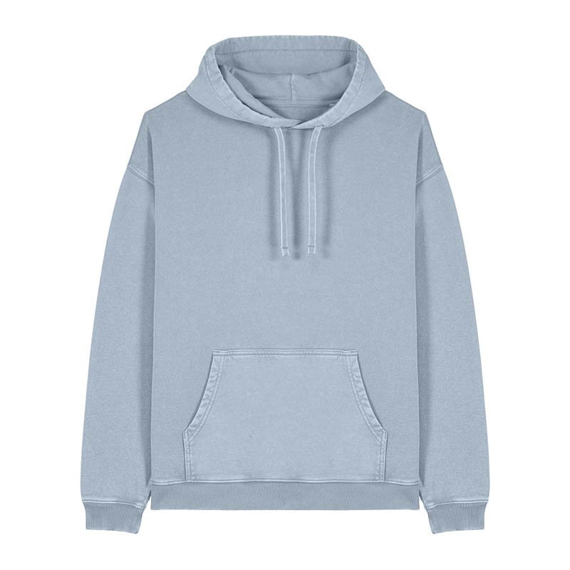 Hood jacket. Metal zip at center front and pockets. Drawstring at hood. · 100% terry cotton, enzyme wash, 280 g/m² · 555 faded blue, 955 faded grey, 600 navy, 121 grey melange, 900 black · S–XXXL