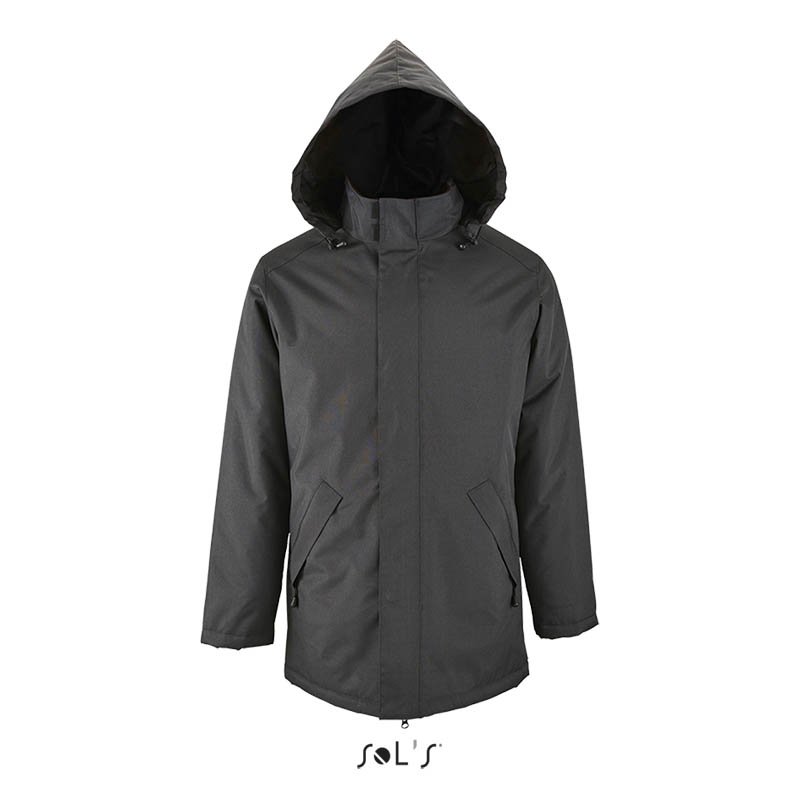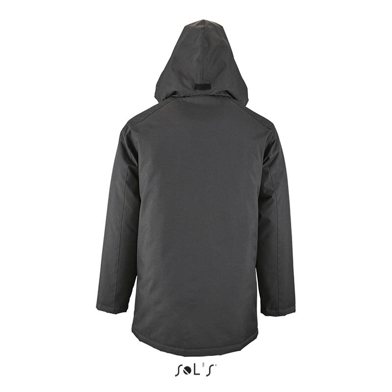 Kvalita.100 % polyester – PVC úprava.Podšívka a polstrovanie: 100 % polyester.Štýl.Otvor na zips s dvojitým bežcom a légou so samosvornými pásmi a skrytými cvokmi.Kapucňa vnútri goliera.Vnútorný golier s flísovou podšívkou.2 vonkajšie vrecká na zips so záklopkami.1 vnútorné vrecko.Manžetové uťahovacie prvky.