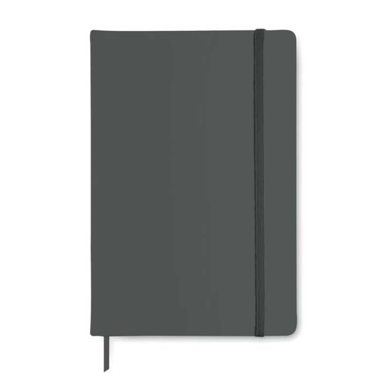 A5 linajkový poznámkový blok so 160 stranami (80 listov), pevným PU obalom, čiernou záložkou a s gumičkou na zatváranie.