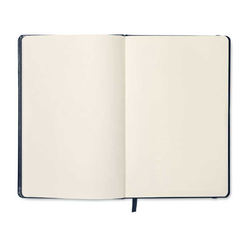 Zápisník formátu A5 s deskami ze 40 % recyklovaného PU a 60 % PU. 160 linkovaných stran (80 listů) recyklovaného 70g papíru. Ladící záložka z polyesteru.