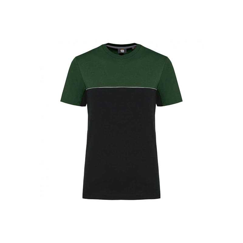 Modern fit, bicolour T-shirt. Elastane in neck rib. Neck rib with four layers for better stability. Tear-out neck label and separate woven size label. In the inner left side seam a pocket is provided for sewing in a laundry chip. The fabric has been ring-spun and treated with an enzyme wash, which pre-shrinks the material and gives it a soft feeling. Oeko-Tex 100, OCS & GRS certified. T-shirts packed 5 pcs in a biodegradable bag - certified by OK compost INDUSTRIAL and TÜV AUSTRIA. Fabrics: 50% organic cotton, 50% recycled polyester, Weight: 180 g/m2 Colour: 9390 Anthracite/ Black, 9093 Black/ Anthracite, 9040 Black/ Red, 9030 Black/ Orange, 6053 Navy/ Cobalt, 5360 Cobalt/ Navy Size: S - 5XL