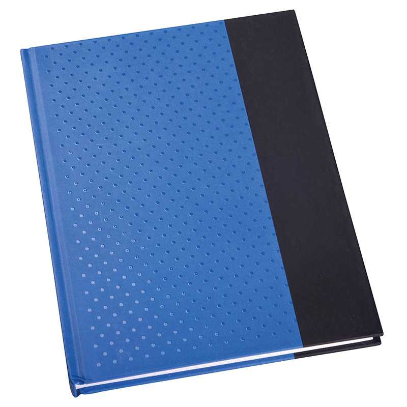 Zápisník veľkosti A5 s pláteným vzhľadom obalu, čiernym gumovým uzáverom a záložkou. Obsahuje 160 linajkových strán.