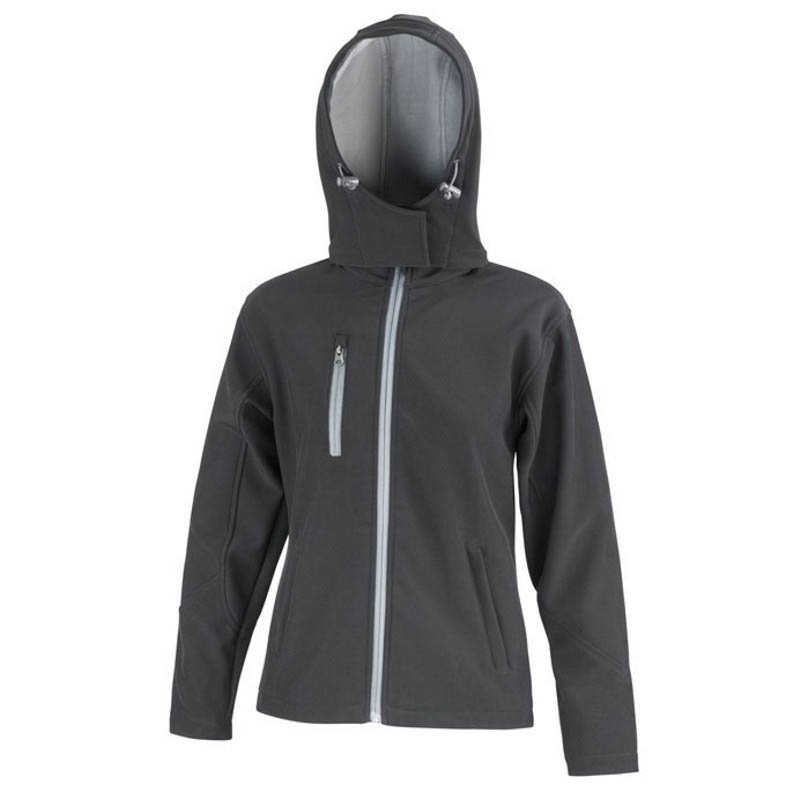 Inner storm flap. Decorative back yoke. Full front zip.Zip closing front pockets. Detachable, adjustable hood. Micro fleece inner provides extra warmth. Soft, high stretch fabric & comfortable active cut. Open cuff & hem. Fashionable shaped longer back panel. TX 3 Layer Performance Fabric. Značka : RESULT . Materiál : 93% polyester / 7% elastan