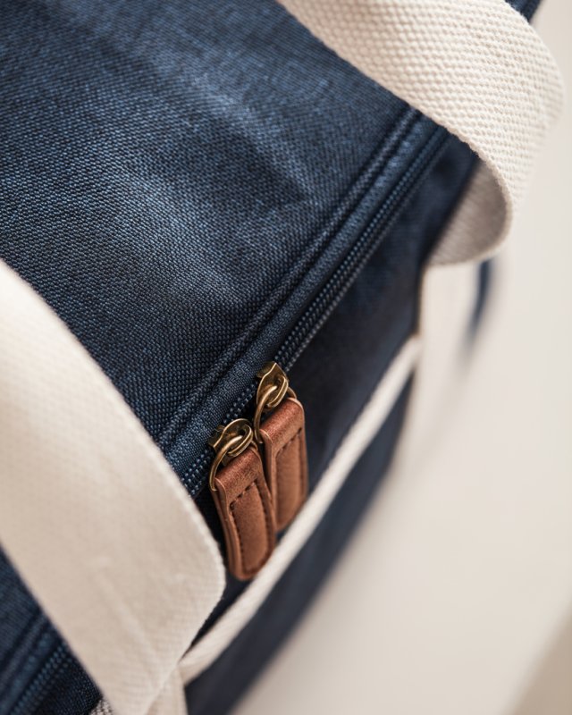 Dokonalý chladiaci kôš, tón v tóne s detailmi z imitácie kože a bavlny. Na vonkajšej strane chladiaceho koša je malá priehradka, do ktorej môžete uložiť ďalšie potrebné veci. Silná výplň z materiálu PEVA zaisťuje dlhodobé udržanie chladu. Po použití sa ľahko čistí a suší. Vďaka nastaviteľnému ramennému popruhu a dvojitej rukoväti ju môžete nosiť viacerými spôsobmi.