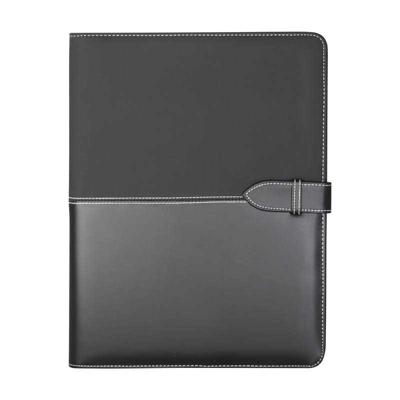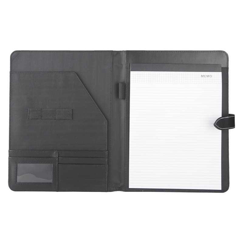 A4 zakladač na dokumenty z umelej kože s 20 listovým linajkovým blokom, držiakom na perá a priehradkou na vizitky.