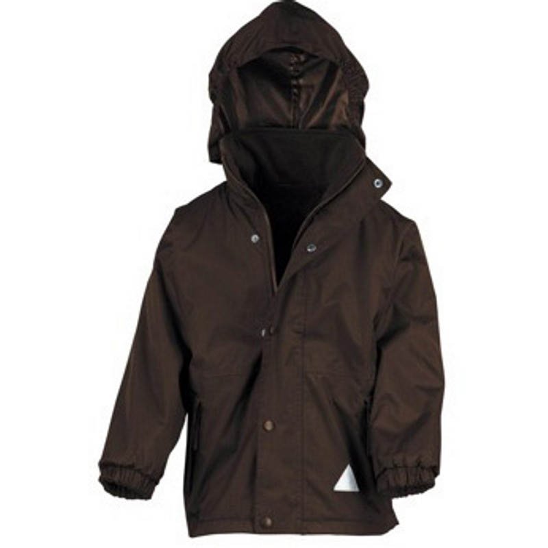 ·Outer: 280 gsm, 100% polyester (StormDri 4000) with PVC coating ·Reverse (partly in contrast color): 280 gsm, 100% polyester (Active Fleece by Result®, anti-pilling) ·Double stitched taped seams ·Wind and waterproof (4,000 mm) ·Concealed hood in collar with tear release ·Safety hang tag incorporating 3M™ reflective materials (upper back of polyester reverse) ·Reversible full zip with stud closing storm flap ·Elasticated cuffs ·Zipped side pockets ·Decoration access in hem ·Suitable for: fleece: embroidery; outer: embroidery, direct print and transfer print. Značka : RESULT . Materiál : 280g/m2; 100% Polyester