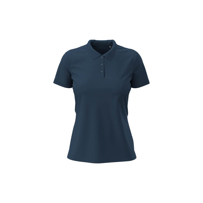 NOVINKA 2025. This women's polo shirt is made of a super stretchy combed cotton and elastane blend. Its high-quality cotton piqué creates a robust yet soft waffle-like structure.