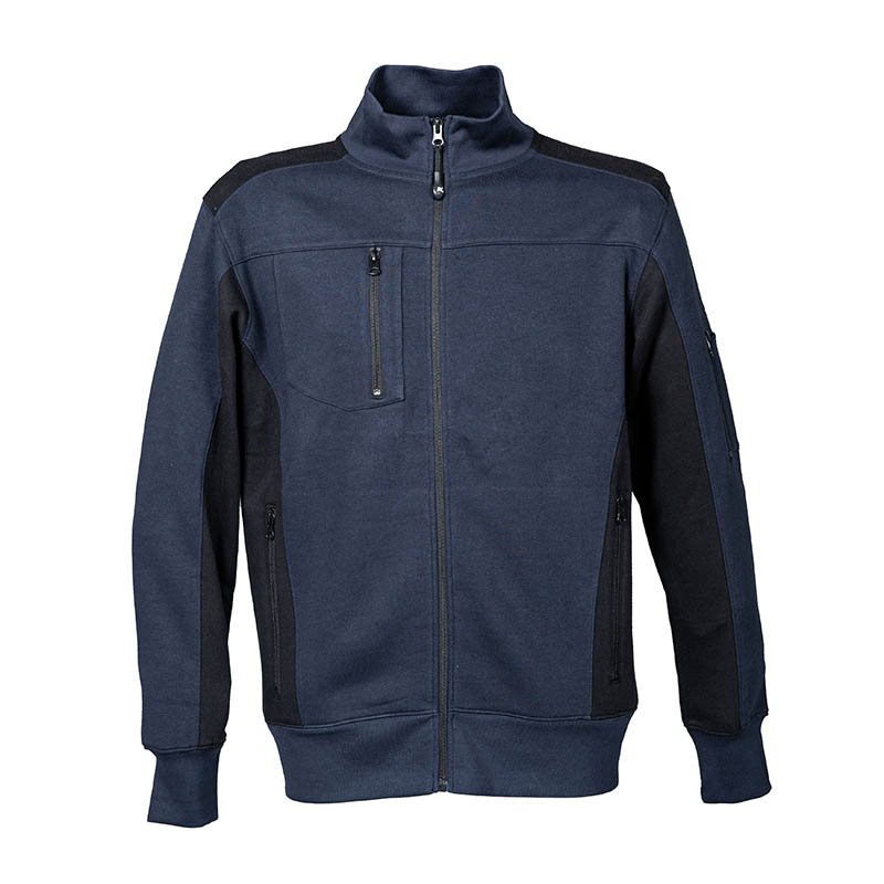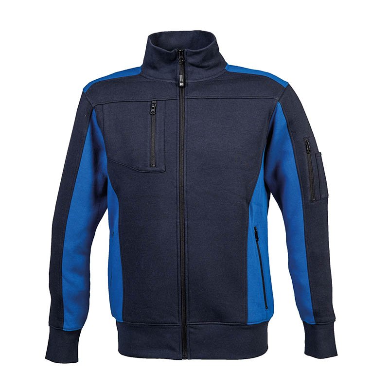 Felpa 60% cotone - 40% polyestere - Spalle, fianchi, avambracci e parte superiore della schiena in tessuto interlook accoppiato elasticizzato - Collo a lupetto - Zip lunga - Cerniere nastrate YKK - Una tasca con zip sul petto con nastratura rifrangente - Due tasche con zip - Triplo portapenna sul braccio - Piping rifrangente sulla parte alta della schiena - Polsini e fondo maglia in costina elasticizzata - Nastro di rinforzo interno collo - Cuciture ribattute