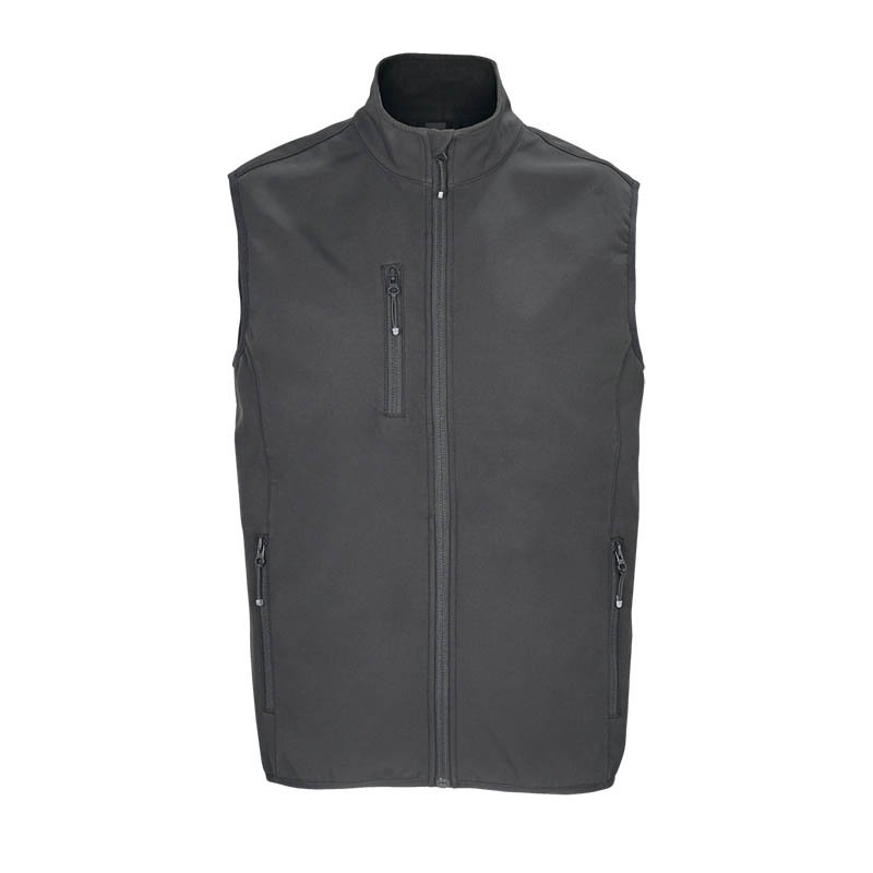 Softshell vest based on same as the jacket in bounded fabric with stretch capabilities. Two coloured zipper at front and pockets. Possible to add zip pullers in other colours matching the company logo. // 96% POLYESTER/ 4% SPANDEX, BRUSHED INSIDE // 400 RED, 600 NAVY, 632 OCEAN BLUE, 728 FRESH GREEN, 900 BLACK, 935 STEEL GREY, 100 WHITE S - 5XL