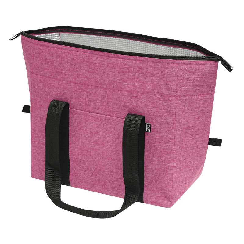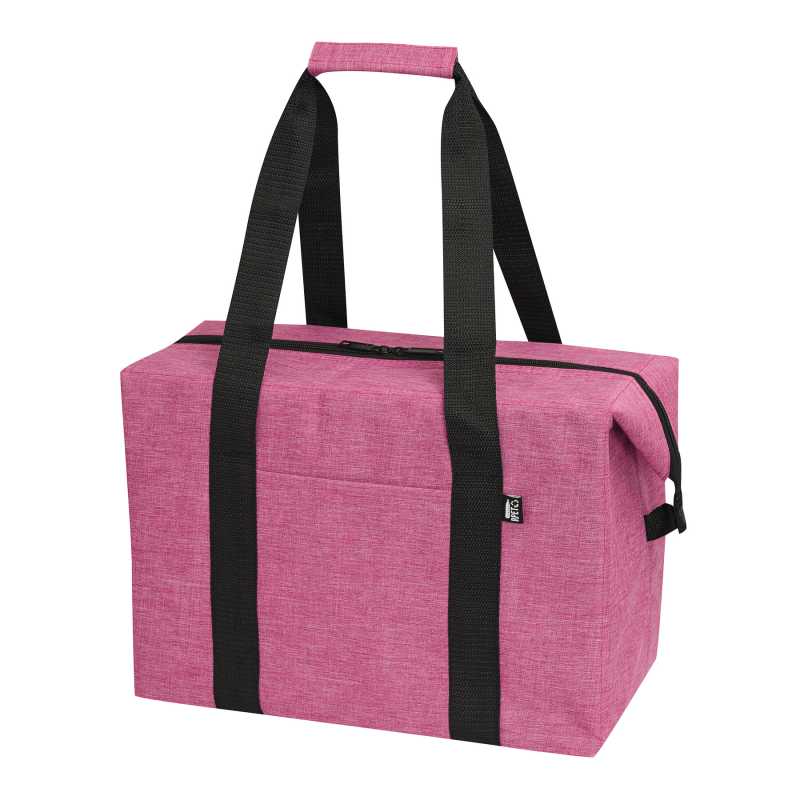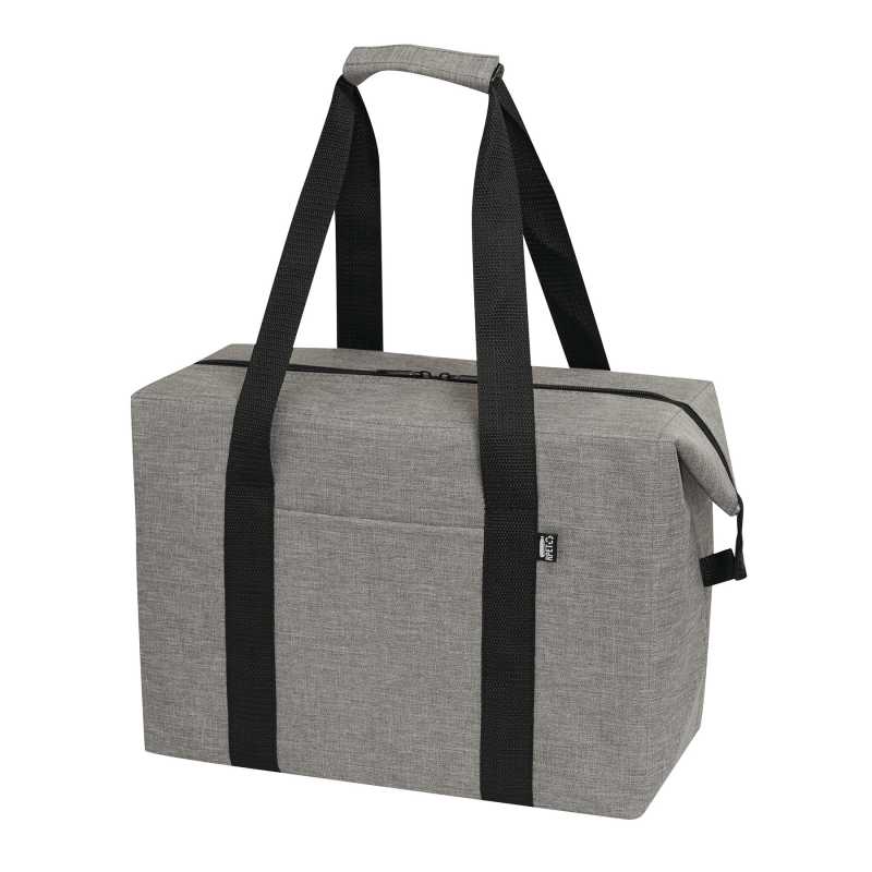 Chladiaca taška z 600D RPET polyesteru s PEVA výstelkou, s 2 priehradkami na zips a nastaviteľným ramenným popruhom. S výrazným štítkom RPET.
