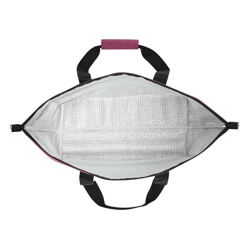 RPET cooler bag with aluminium foil inside. Two zippered compartments. Including carrying strap.