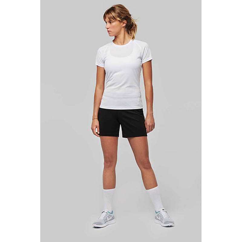 100 % polyester.Rýchloschnúca ľahká tkanina.Okrúhly výstrih s páskou pri krku.Raglánové rukávy s vrchným prešívaním.Dvojité prešívanie pri krku, manžetách a spodnom okraji.Certifikát STANDARD 100 podľa OEKO-TEX® č. CQ 1007/7, IFTH.