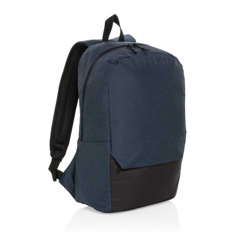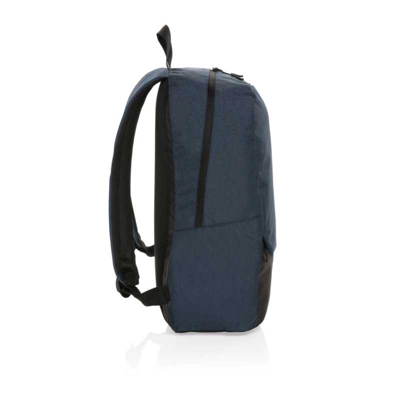 Městský batoh s hlavní přihrádkou na zip a uzavírací sponou; vrchový materiál RPET; polstrovaná zásuvná přihrádka a vnitřní prvky organizéru; boční přední kapsa na zip; dvě boční zásuvné