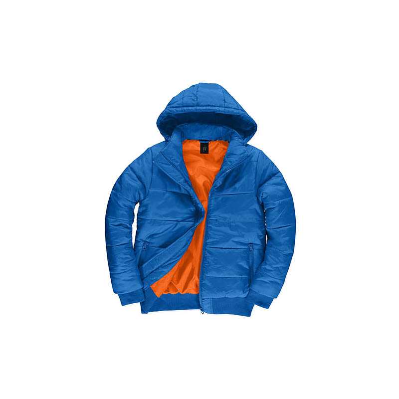 HEAVYWEIGHT PUFFER BOMBER WITH FASHIONABLE CONTRASTED INNER LINING ·Adjustable and removable padded hood ·Left chest and back (shoulder to middle back) panels with hidden zips for easy decoration access ·Standing collar full length internal stromflap and cotton feel 2x2 rib on cuffs and hem for wind protection ·Bomber style ·Retail cut for a contemporary image ·Fabric tested for all print techniques and embroidery ·2 zipped hand pockets ·1 inner wallet pocket. Značka:B&C. Materiál:100% polyester 300T taffeta