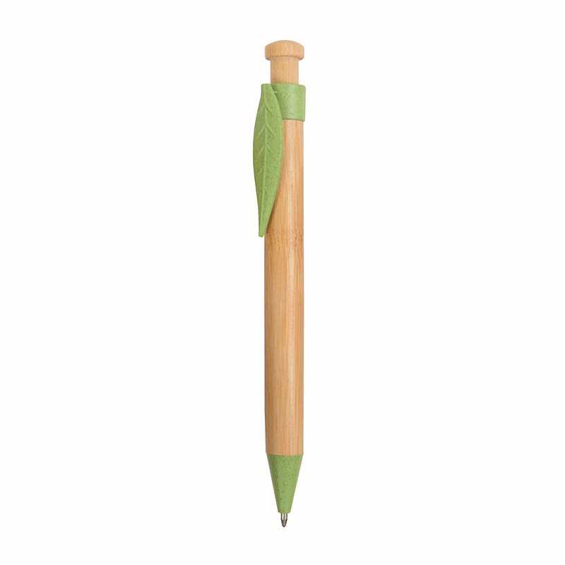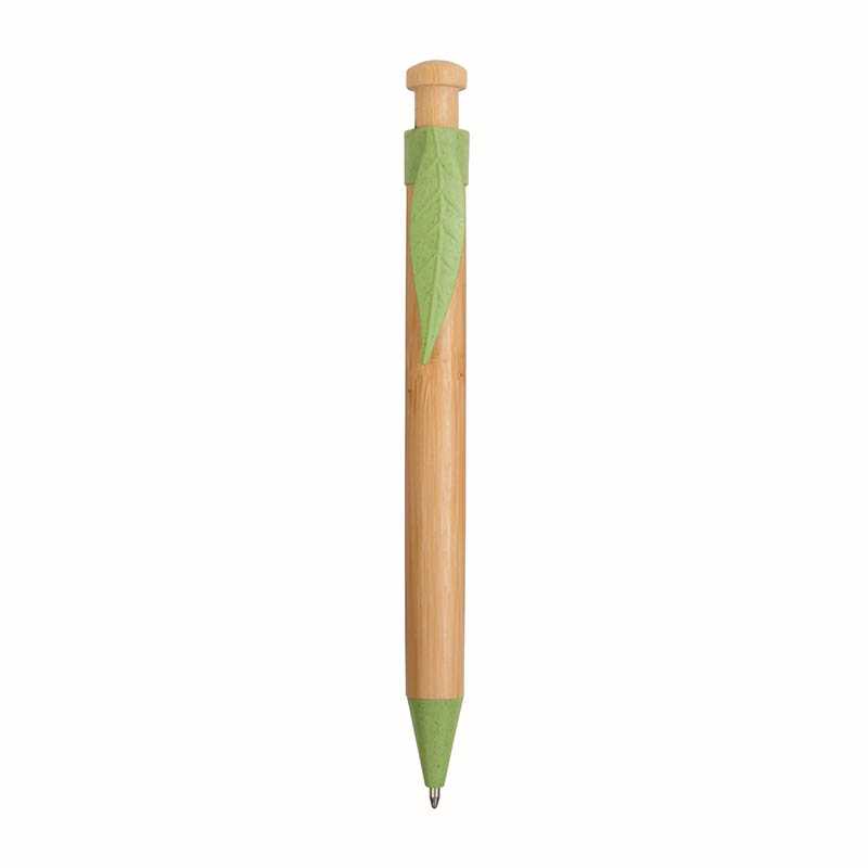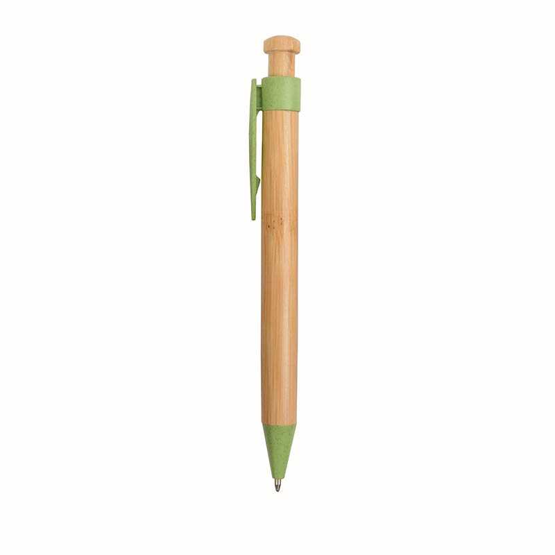 Push button ball pen with bamboo barrel and wheat-straw (50%) and PP (50%) fittings