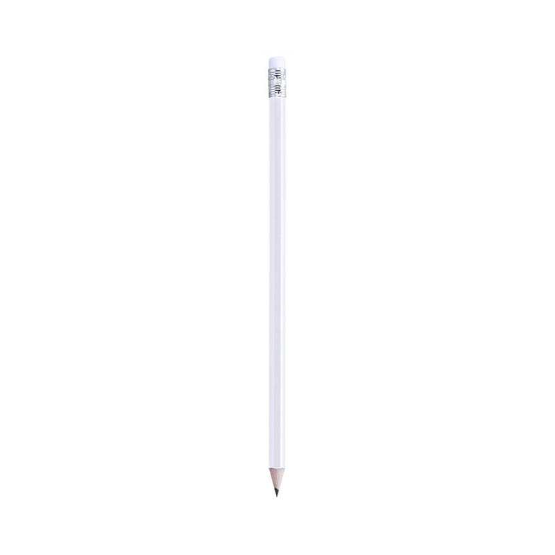 NOVINKA 2025. Wooden pencil with glossy finish. With round barrel and white colour rubber. Available in a wide range of colours. Black color lead and sharpened tip.