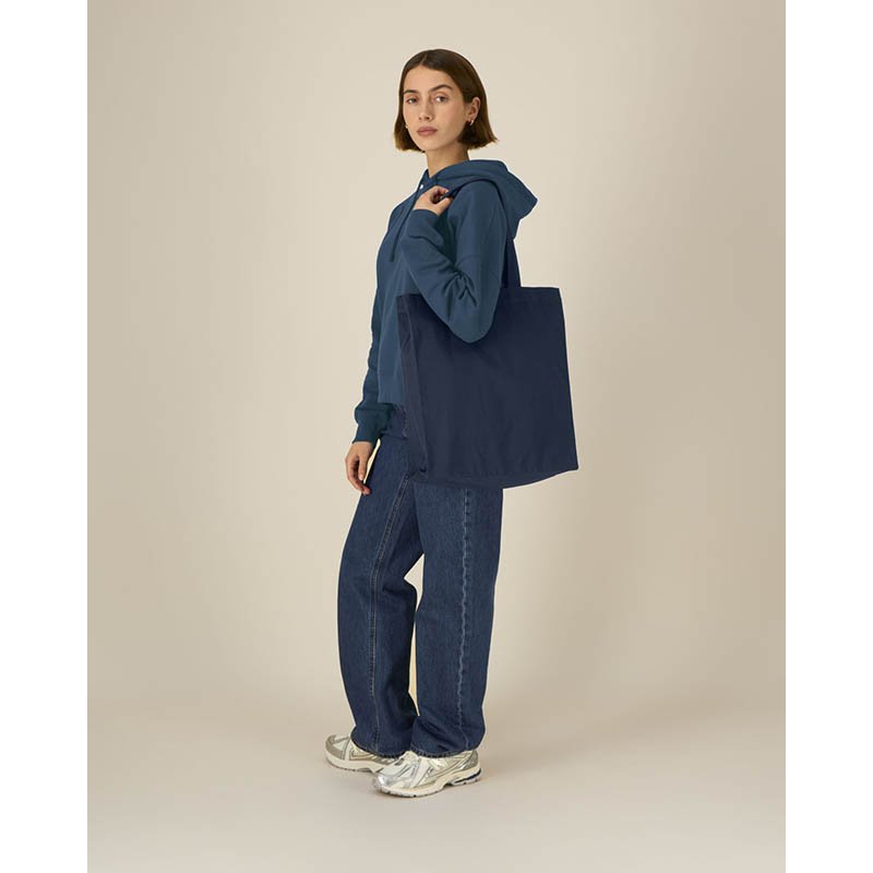 180 g/m2 denim recycled cotton shopping bag, long handles and gusset