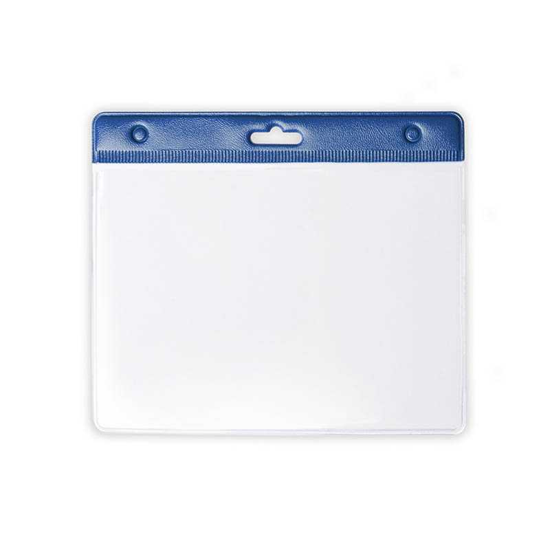 NOVINKA 2025. Vertical PVC identifier. Practical badge holder with reinforced top and perforations for both central and side fastening.