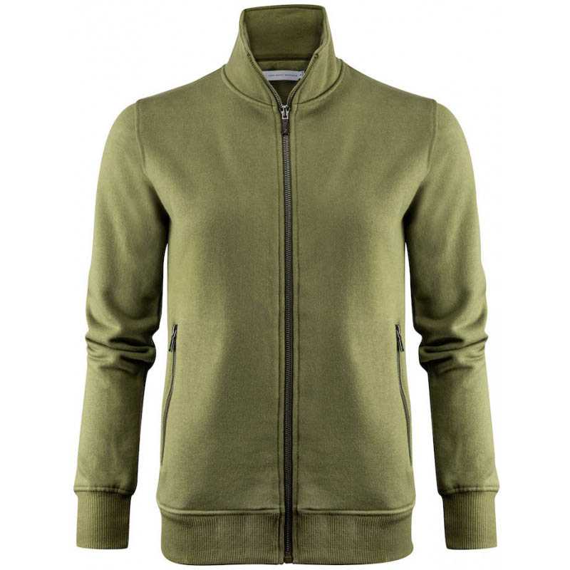 Full zip sweater with half-moon in the neck. Matte, black nano membrane zip at center front and side pockets. Brushed on the inside. Ribbed ending at sleeves and bottom hem. Oeko-Tex 100. Colors: 120 grey melange, 600 navy, 704 moss green, 900 black New version 85% organic cotton, 15% recycled polyester, 300 g/m2 Old version 80% organic cotton, 20% recycled polyester, 300 g/m2 XS-XXL