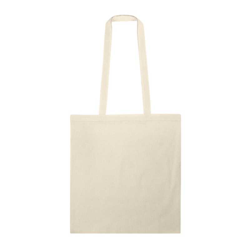 NOVINKA 2025. Bag in resistant cotton material 140g/m2 with natural colour finish. With 70cm length handles and stitched finish. Resistance up to 7kg weight.