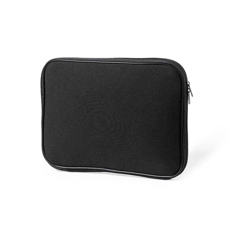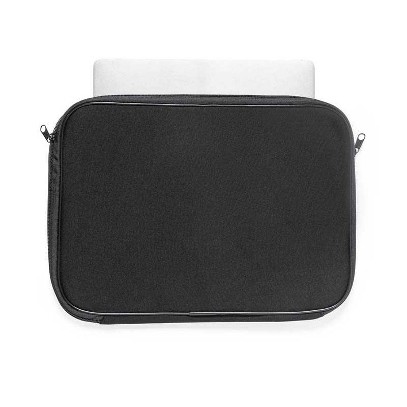 NOVINKA 2025. Laptop sleeve made of durable soft shell. In stylish black color, with padding inside. Matching zip closure with double puller. For laptops or tablets up to 15 inches.