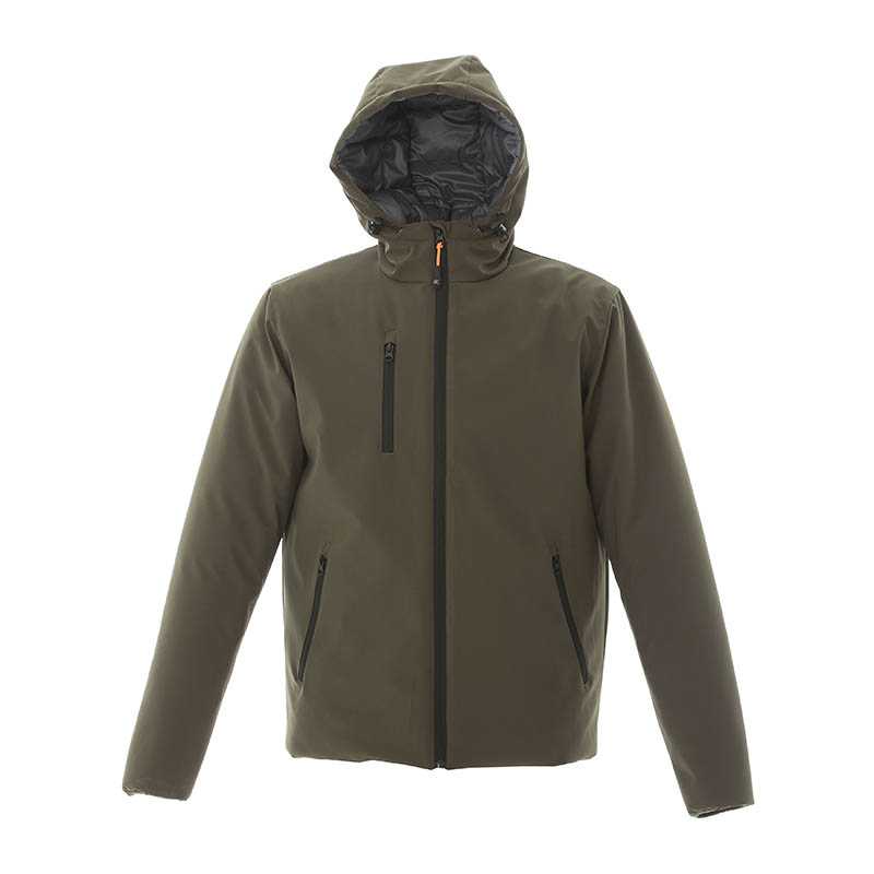 "Jacket waterproof - Outshell in 90% polyester-10% spandex with membrana TPU 4000 mm, 1000 breathability - Lining in polyester 380 T - Soft polyester padding (goose effect) - Padded hood - Two big pocket with zip water resistance - Inner wallet pocket - El"