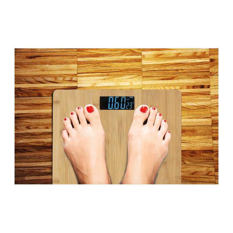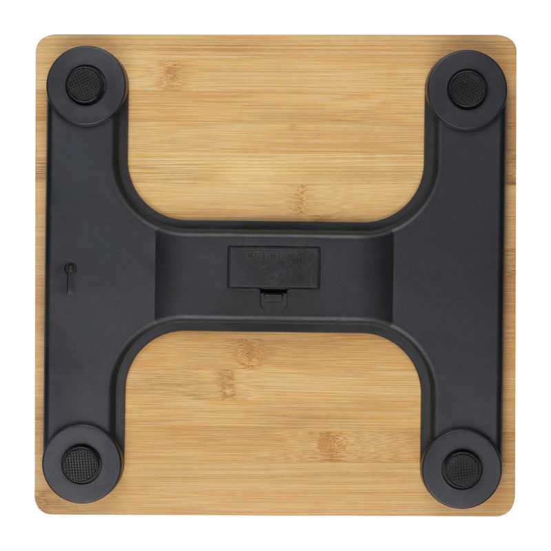 Digitálna osobná váha s nášľapnou plochou z bambusu,maximálnou nosnosťou 150 kg. Možnosť zobrazenia v kg / lb / st.