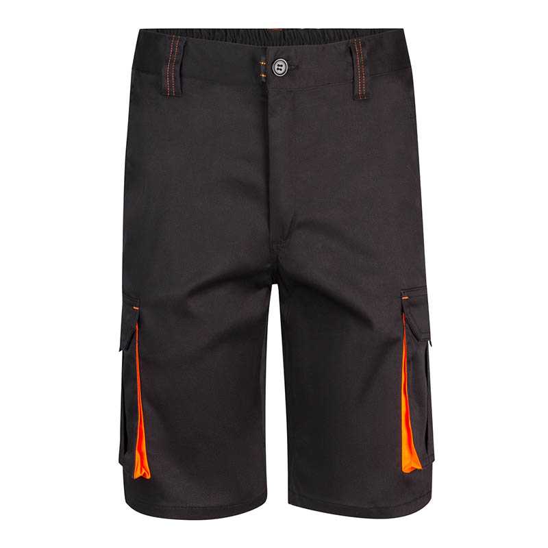 SHORT TROUSERS IN STRETCH FABRIC HORIZONTALLY AND VERTICALLY FOR MAXIMUM COMFORT - 90% nylon - 10% elastan - Black reinforcement fabric, in tear proof 400D nylon - Front and rear reflective prints - Two front pockets - Two patched pockets in tear proof fabric with covered press studs - A side pocket in tear proof fabric with removable key hook or badge holder; double pen holder and tools holder loop - Double back pocket for ruler and tools holder in anti-tear fabric and 4STRETCH logo - Two back pockets with velcro, in anti-tear fabric - Fluo yellow piping on the side and back pocket - Elastic waist and oversized loops - Covered snap button at the waist - No scratchy elements S42/44 M46/48 L50/52 XL54/56 XXL58/60 3XL62/64