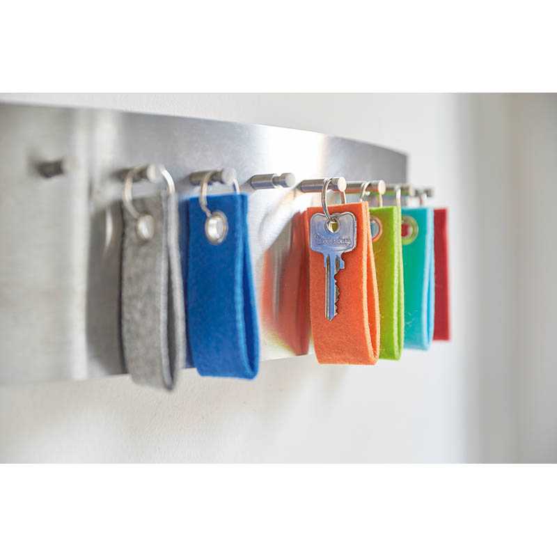Farebná karabínka na kľúče s kovovým krúžkom.