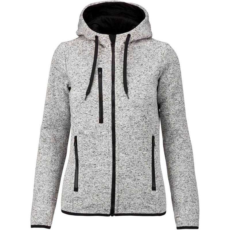 "Lady’s cotton – polyester sweater - Special dry fabric - Lined hood - Full zip with waterproof cover - Raglan sleeves - Two zip-pocket - Contrasting details - Colored tape inside collar - Ribbed cuffs and band at the waist"