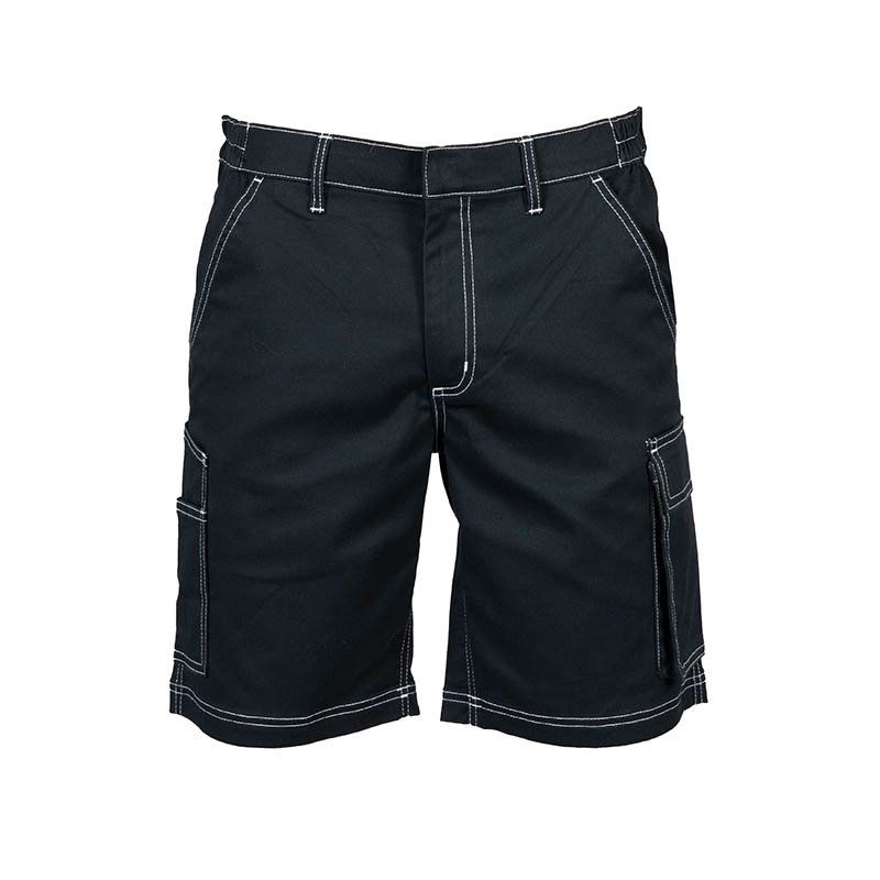Stretch multi-pocket short pant - Fabric in 65% polyester -33% cotton - 2% elastane - Pre-washed fabric - Double stitching in contrast - Elastic waistband on the hips - Two front pockets - A side pocket with bellows with velcro - Double side pocket for tools or ruler - A back pocket with velcro - Covered snap button at the waist Please wash the garment before wearing it for the first time to preserve its quality over time S42/44 M46/48 L50/52 XL54/56 XXL58/60 3XL62/64