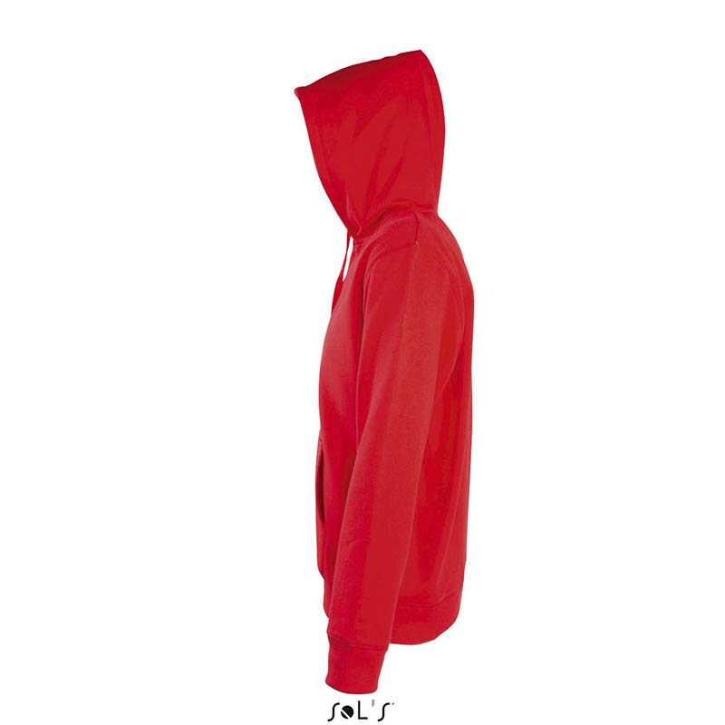 Kvalita.50 % prstencovo spriadaná bavlna – 50 % polyester.Štýl.Elastanový rebrovaný spodný okraj a manžety.Vsadené rukávy.2 klokanie vrecká.Podšitá kapucňa so sťahovacou šnúrkou tón v tóne.Skrytý zips.Rovnýs trih.Strihané a šité.