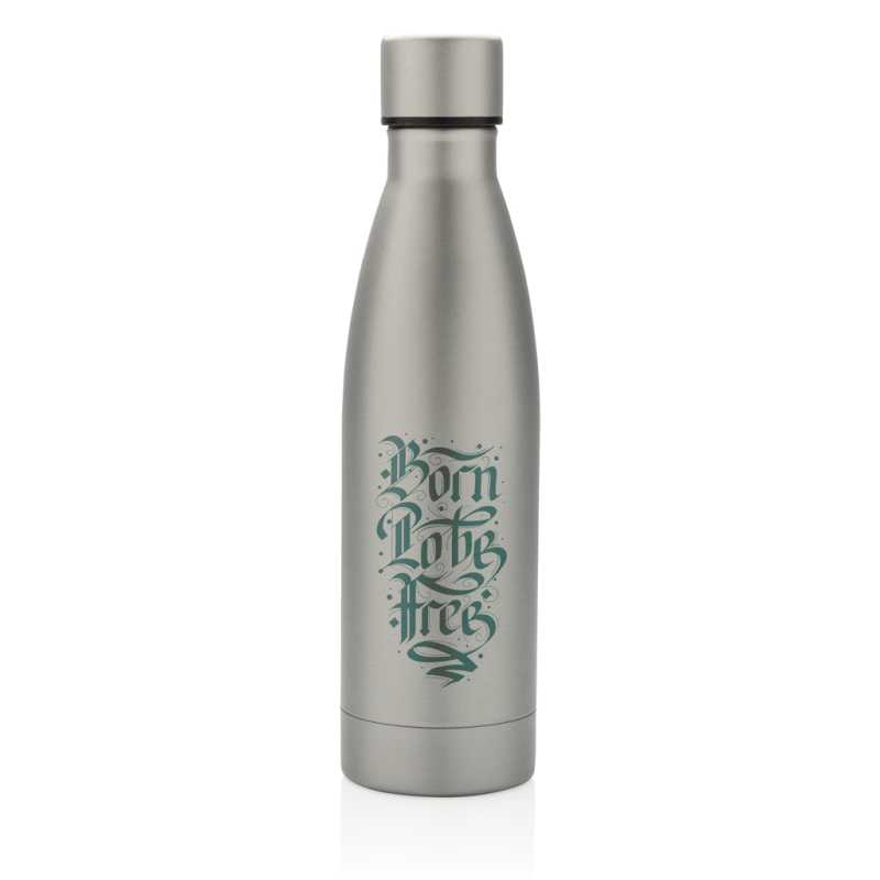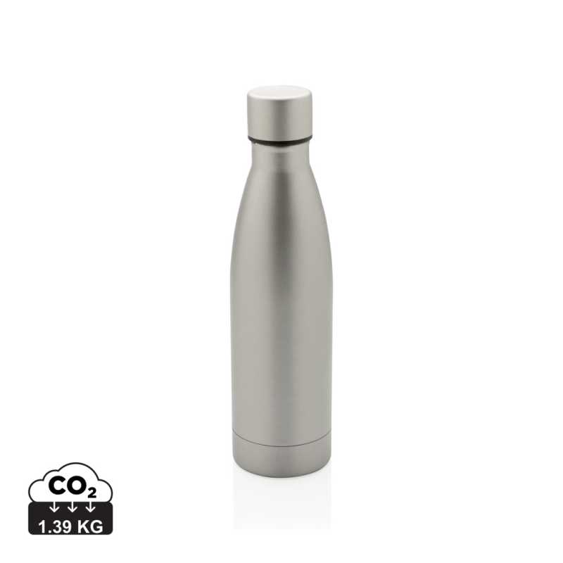 Ľahká opakovane použiteľná fľaša na vodu vyrobená z odolnej recyklovanej nehrdzavejúcej ocele 18/8. Ideálna veľkosť, nízka hmotnosť a nepriepustné viečko z nej robia perfektnú fľašu pre každodenné použitie a udržiavanie pitného režimu. Odporúča sa iba pre studené nápoje. Vyrobená z RCS recyklovanej ocele. RCS (Recycled Claim Standard) je globálny štandard, ktorý umožňuje overiť použitie recyklovaného materiálu v produkte naprieč celým dodávateľským reťazcom. Celkový podiel recyklátu podľa váhy produktu: 80%. Objem: 500 ml. Bez BPA. Balené v FSC® kraftovej darčekovej krabičke.