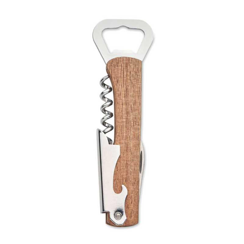 Otvárač a vývrtka z nerezovej ocele s rukoväťou z prírodného korku.