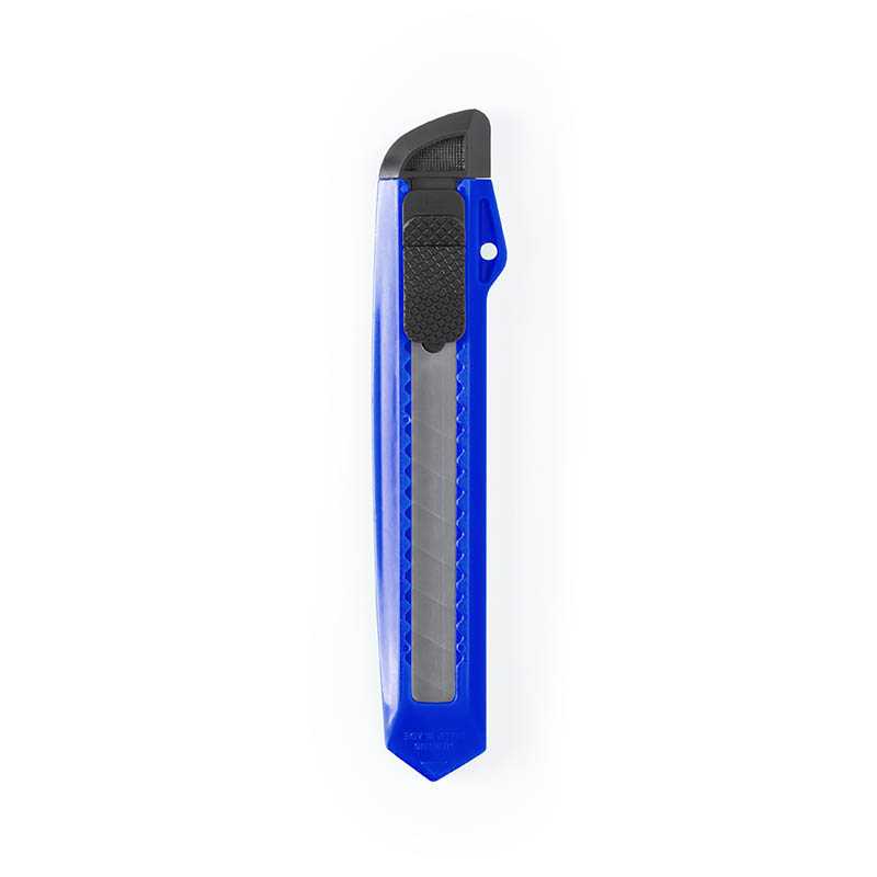 NOVINKA 2025. Cutter in translucent finish PS. With a push-button automatic retraction mechanism and a blade of 6 x 1.9 cm, without a locking system (stopper).