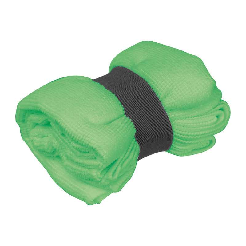 NOVINKA 2025. Absorbent microfibre towel. Size 40x90 cm, in 160gr/m2 microfibre material. Available in a wide range of colors, with an elastic band in white color for printing.