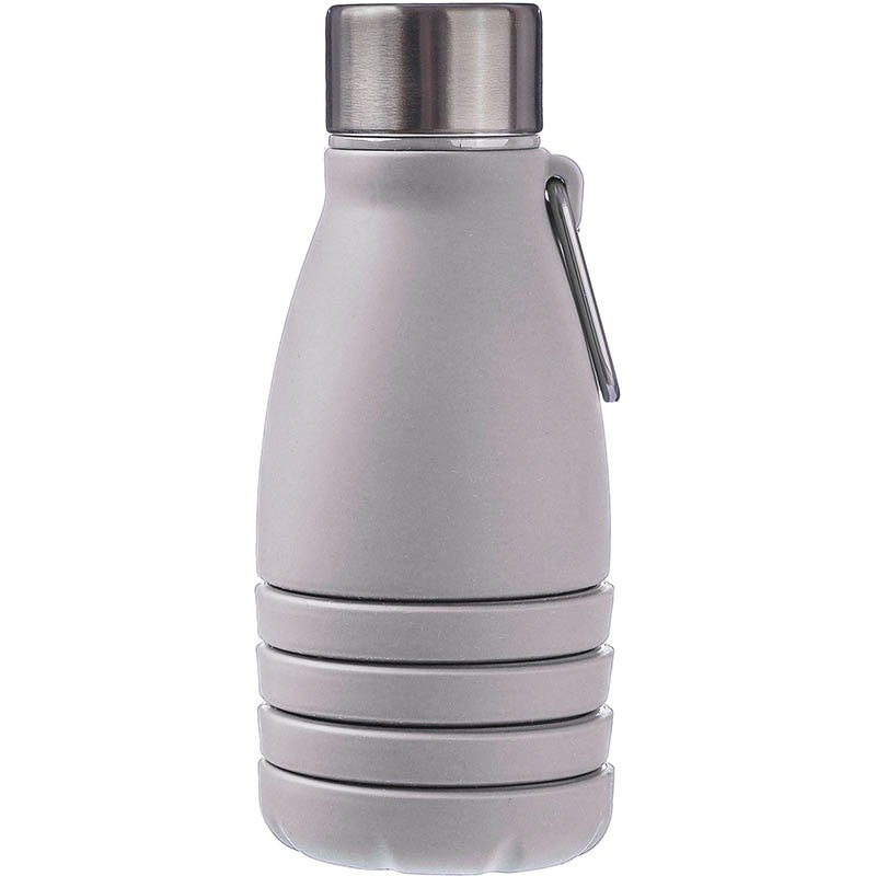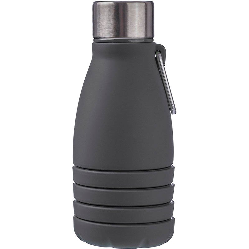 NOVINKA 2025. Silicone foldable drinking bottle (550 ml) with a stainless steel lid and aluminum carabiner hook. Folded