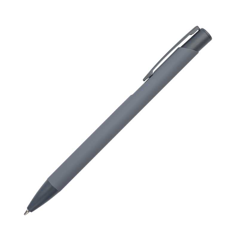 NOVINKA 2025. Guľôčkové pero z recyklovaného hliníka s pogumovaným telom a kovovými časťami. S modrou náplňou.