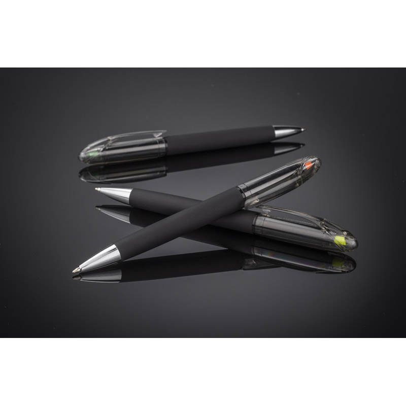 HILIG jsou dva užitečné gadgety v jednom. V horní části tradičního kuličkového pera je pestrobarevný zvýrazňovač. Tělo kuličkového pera je potaženo gumovou vrstvou a je mimořádně příjemné na dotek. Pero s otočným mechanismem, náplň modrá.