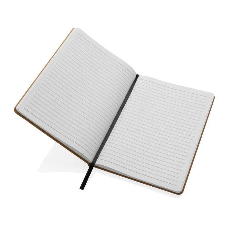 Zápisník vo formáte A5 s kamenným papierom, FSC® korkovým obalom, čiernou väzbou a praktickou záložkou. Pevná väzba pre vyššiu výdrž. Obsahuje 80 listov/160 strán vysoko kvalitného bieleho linkovaného kamenného papiera (120g/m2). Balené v FSC® kraftovom obale.