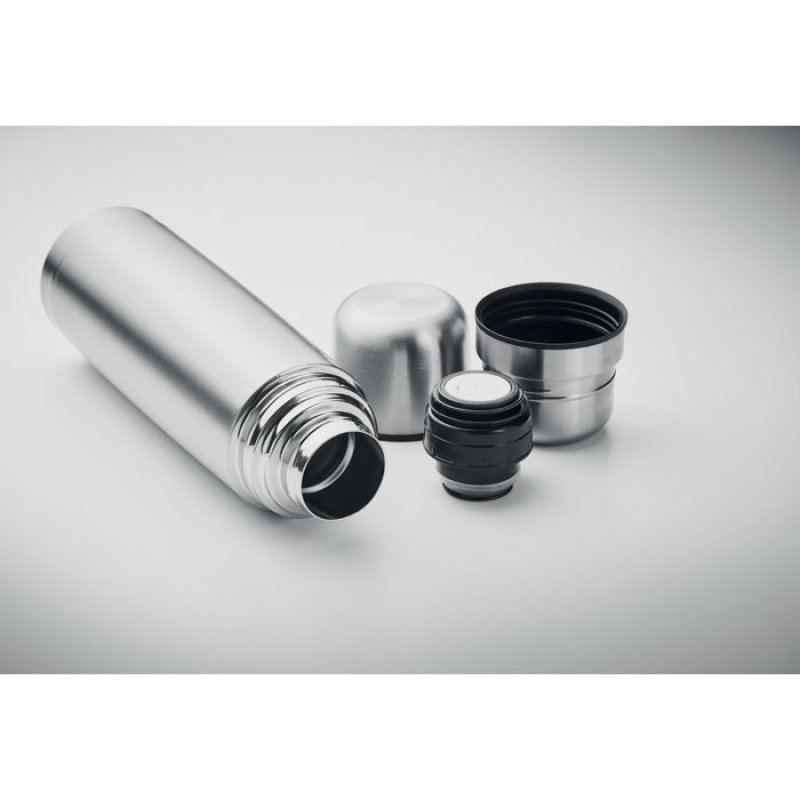 Double-walled stainless steel thermo bottle with screw cap/drinking cup and handy push-pour system. Capacity 1,000 ml. Each piece in a box.