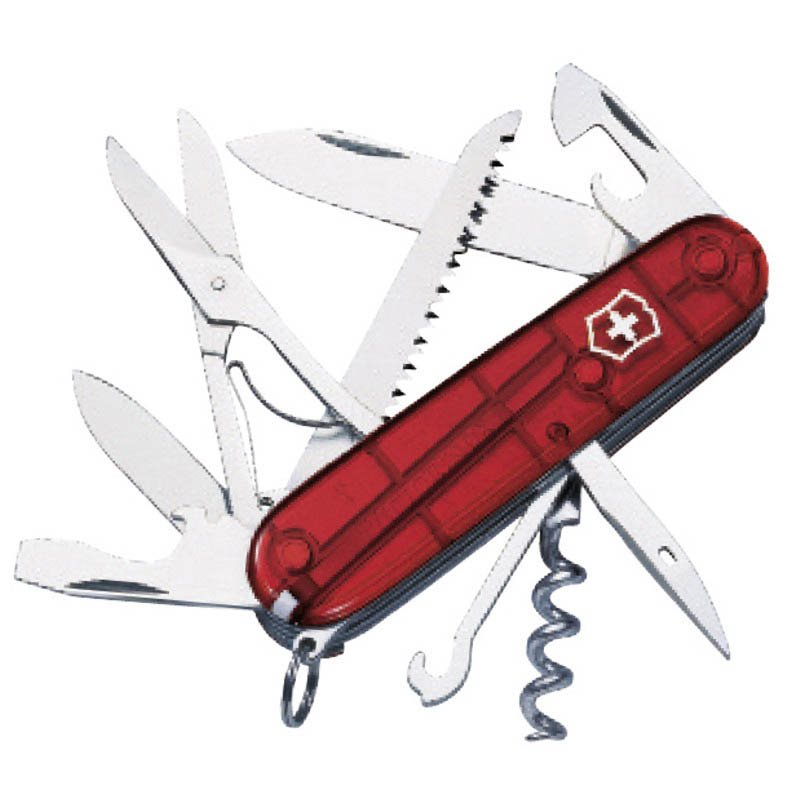 Vreckový nôž o veľkosti 91 mm s nožnicami a pílkou na drevo, vhodný pre cestovanie a turistiku. Počet funkcií 15.