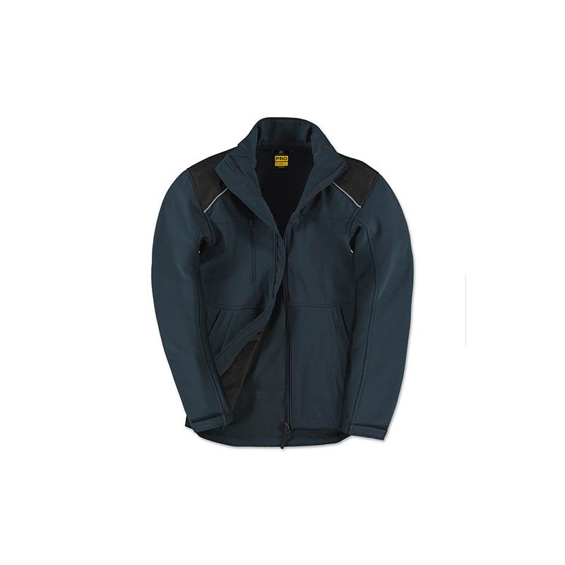 RIPSTOP-STRUCTURE 3-LAYER PRO SOFTSHELL JACKET 1.Micro-fleece inner layer for extra warmth 2.Reinforced patches (black) on shoulders & elbows and rear hem 3.Longer back for freedom of movement + warmth and protection when bending or kneeling 4.Reflective piping at shoulder panels and bottom back for enhanced visibility 5.Seamless shoulder panels for better comfort and waterproofness 6.Ergonomic construction for best ease of movement enhanced thanks to fabric elasticity 7.5 Multi-use and spacious pockets (3 outer + 2 inner) 8.Full decoration access in front + back and sleeves 9.Adjustable bottom hem with drawcords and stoppers. Značka:B&C. Materiál:96% polyester - 4% elastán