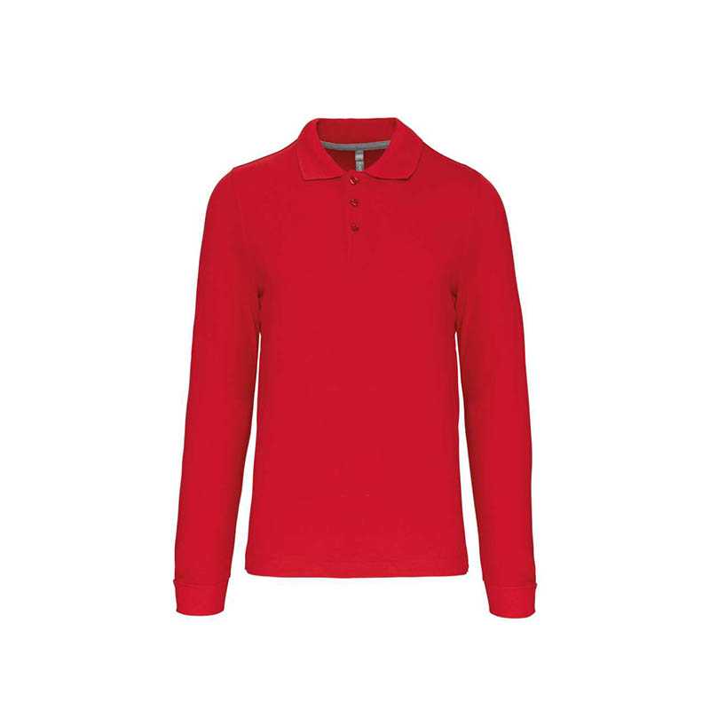 Long-sleeve UNISEX Polo. Piqué Fabric. 100% RingSpun pre-shrunk Cotton. 210 g/m2 Placket with 3 buttons. Shoulder-to-shoulder reinforced neck tape to avoid deformation 1x1 rib knit