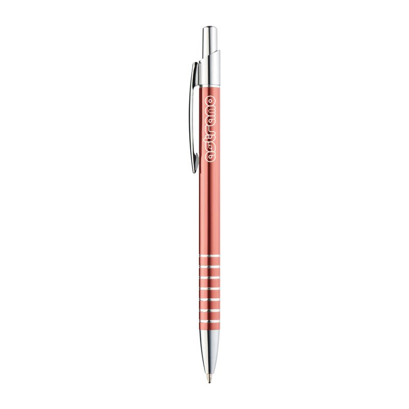 Hliníkové guľôčkové pero s kovovým klipom a chrómovanou špičkou a vrškom. Dodáva sa s modrou náplňou.