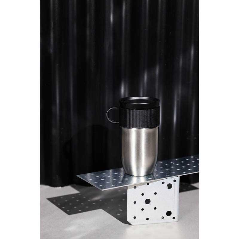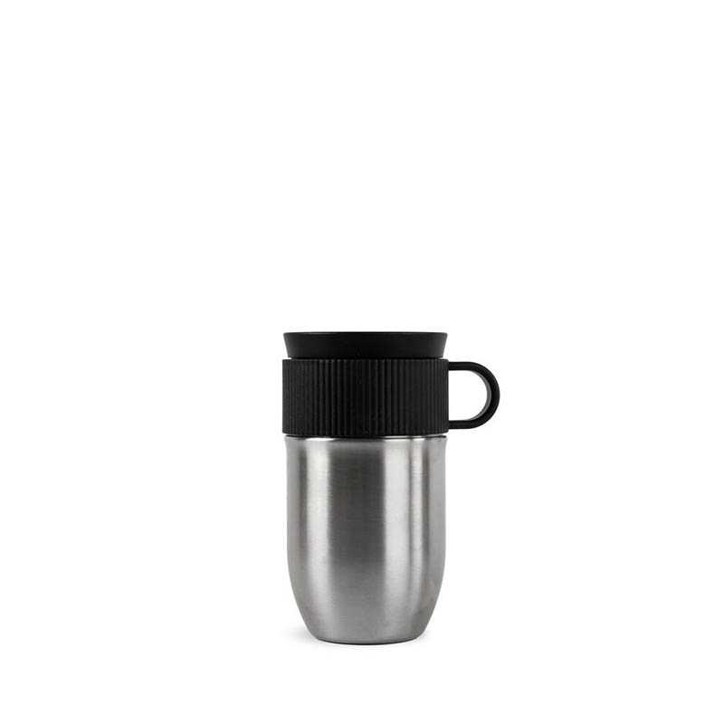 The Ted travel mug quickly becomes a favorite for those who enjoy always having a hot or cold drink on hand. Made from recycled stainless steel, the design is grip-friendly with a practical handle and a smart push function on the lid. Ted has a clean design and is patterned with the characteristic Saga spirit. The double-walled, vacuum-insulated design features a high-quality thin copper layer on the outside of the inner wall, providing better insulation to maintain the temperature. You can drink from the mug 360 degrees, as if there were no lid, giving the feeling of drinking from your favorite cup. Powder-coated. Dishwasher safe. Keeps warm for 4 hours and cold for 8 hours. Holds 28 cl. Design by Studio Sagaform. Delivered in a classic Sagaform box. Article number: 5018544 Material: Recycled steel / Recyclable plastic. Width: 7,5 cm; Height: 14 cm; 28 cl Color: Silver