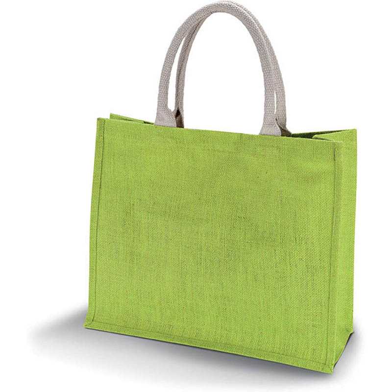 NOVINKA 2025. Bag in durable combination of laminated jute and laminated cotton, with natural cotton handles. Stitched finish with long, reinforced handles, and available in a wide range of colours. Resistance up to 10kg weight.