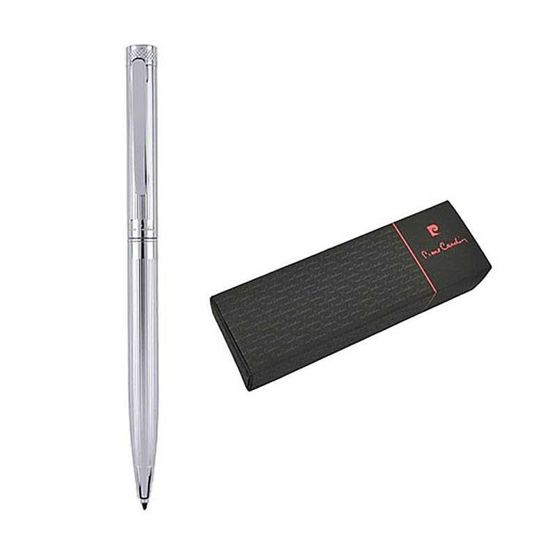Značkové guľôčkové pero Pierre Cardin. Kovové telo pera má jemné rytie po celej dĺžke povrchu. Pero je navrhnuté s otočným mechanizmom a obsahuje kvalitnú náplň v modrej farbe s hrotom 1 mm. Má priloženú náhradnú čiernu náplň. Balené v luxusnej krabičke Pierre Cardin, dodávané s certifkátom pravosti. Odporúčaná technológia potlače: gravír, kartička. Maximálna veľkosť potlače: 25 × 4 mm. Rozmery: guľôčkové pero 1,2 × 14,2 cm; balenie 17,5 × 5,5 × 3,5 cm. Kartónové množstvo v ks: 20.