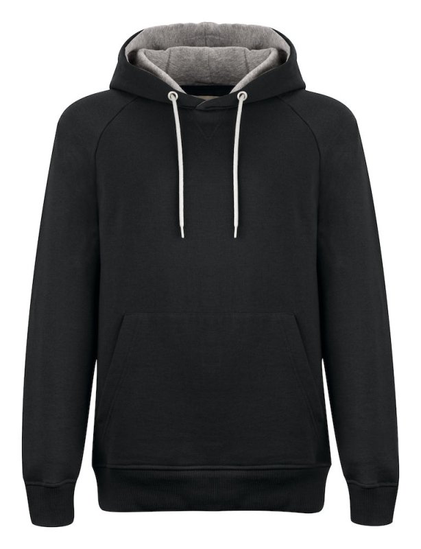 Hoodie with raglan sleeves and half-moon in the neck. Tone on tone drawstrings with rubber bullet point end. Kangaroo pocket on the front. Brushed on the inside. Ribbed ending at sleeves and bottom hem. Oeko-Tex 100, OCS & GRS certified. Colors: 120 grey melange, 600 navy, 704 moss green, 900 black New version 85% organic cotton, 15% recycled polyester, 300 g/m2 Old version 80% organic cotton, 20% recycled polyester, 300 g/m2 XS-XXL